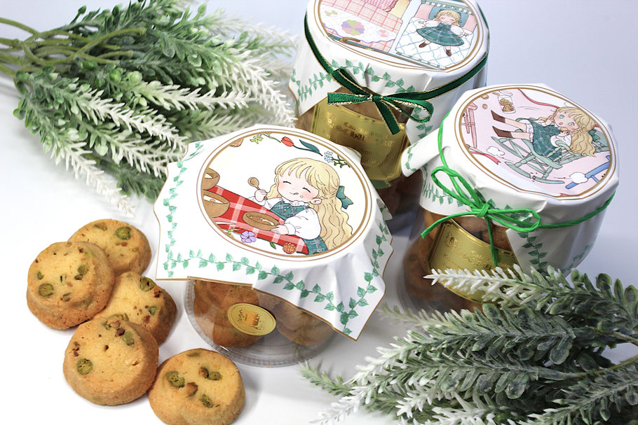 おつまみで有名なピスタチオを、自慢のクッキーに入れてみました。